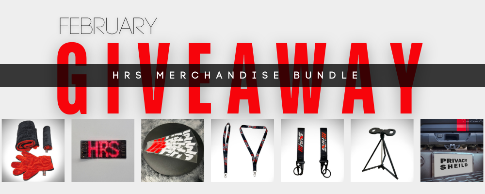This month, we’re giving away an HRS Merchandise Bundle loaded with: Microfiber Towels, an LED Panel, a Privacy Sheild license plate cover, Lanyards, Stickers, and a Keychains!