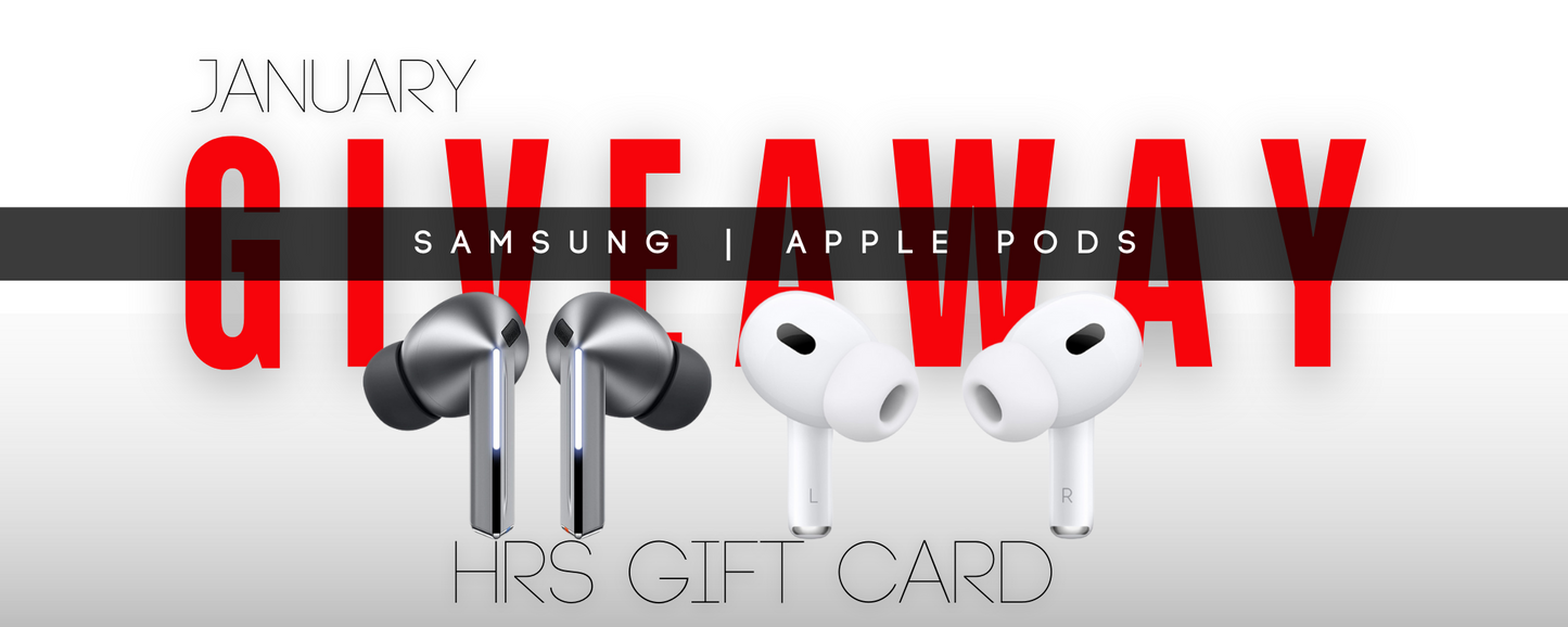Gear up for our incredible January Giveaway! One lucky winner will score either Apple AirPods Pro 2 or Samsung Galaxy Buds 3 Pro, while second place grabs a $100 HRS Gift Card, and third place snags a $50 HRS Gift Card! Don't miss out—shop now, enter, and seize your chance to win big!